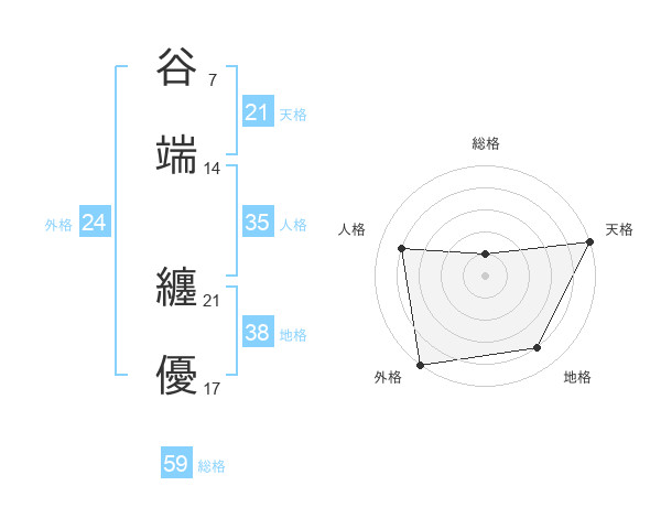 谷端 纏優さんを姓名の画数から五運を鑑定