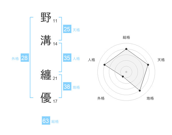 野溝 纏優さんを姓名の画数から五運を鑑定
