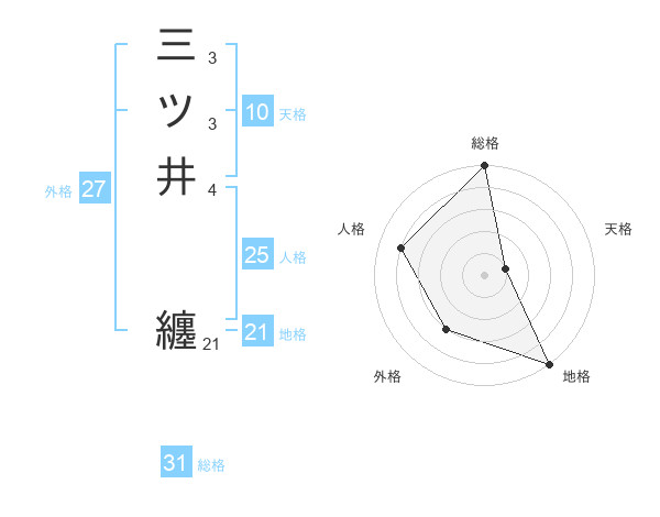 三ツ井 纏さんを姓名の画数から五運を鑑定