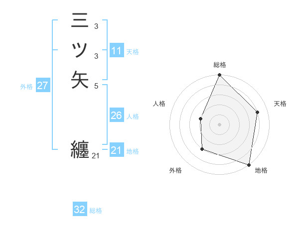 三ツ矢 纏さんを姓名の画数から五運を鑑定