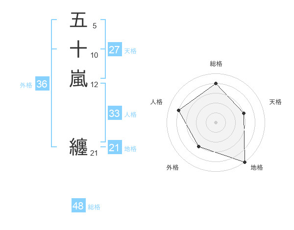 五十嵐 纏さんを姓名の画数から五運を鑑定