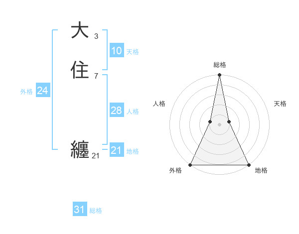 大住 纏さんの総格は31画の5点!