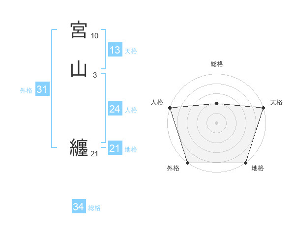 宮山 纏さんの総格は34画の2点!