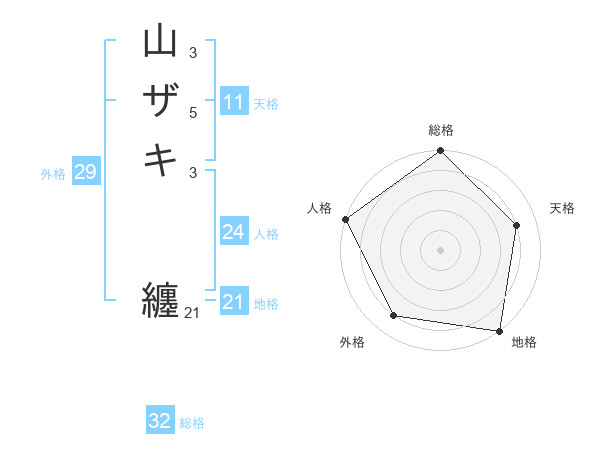 山ザキ 纏さんの総格は32画の5点!