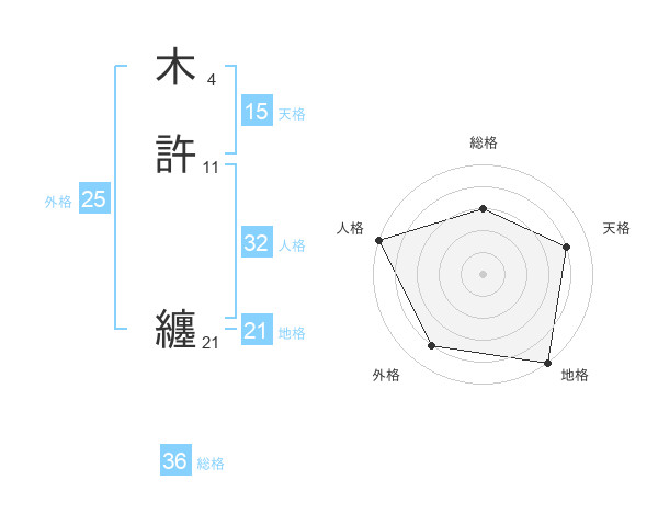 木許 纏さんの地格は21画の5点!