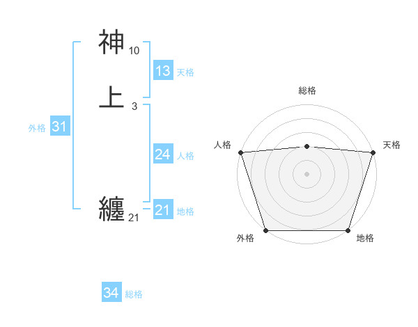 神上 纏さんの天格は13画の5点!