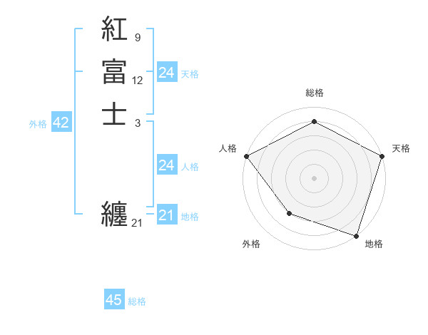 紅富士 纏さんの総格は45画の4点!