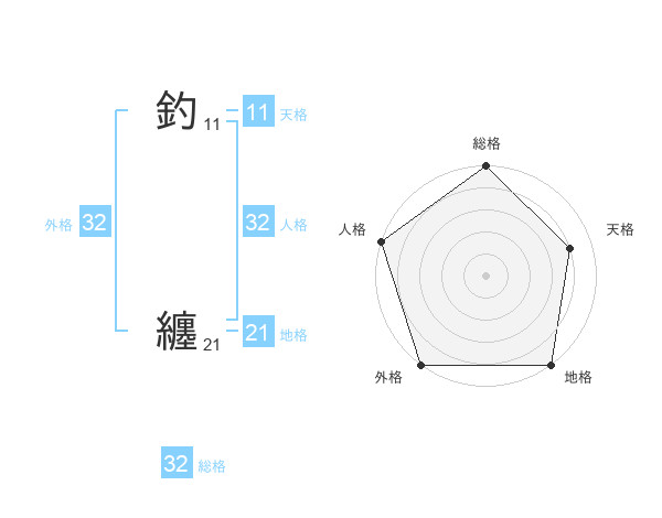 釣 纏さんの外格は32画の5点