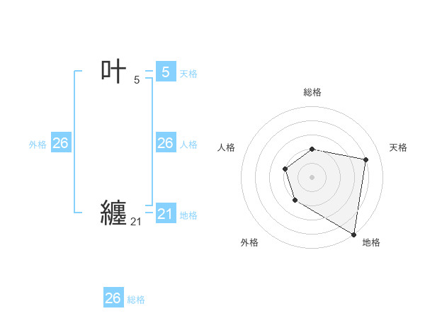 叶 纏さんの外格は26画の2点!
