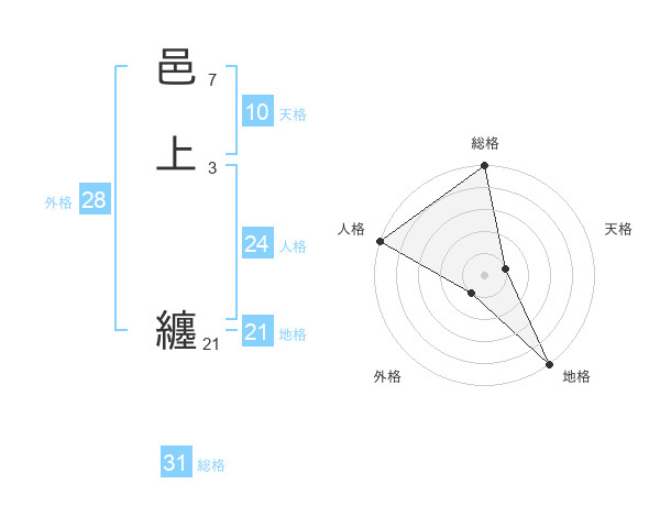邑上 纏さんの地格は21画の5点!