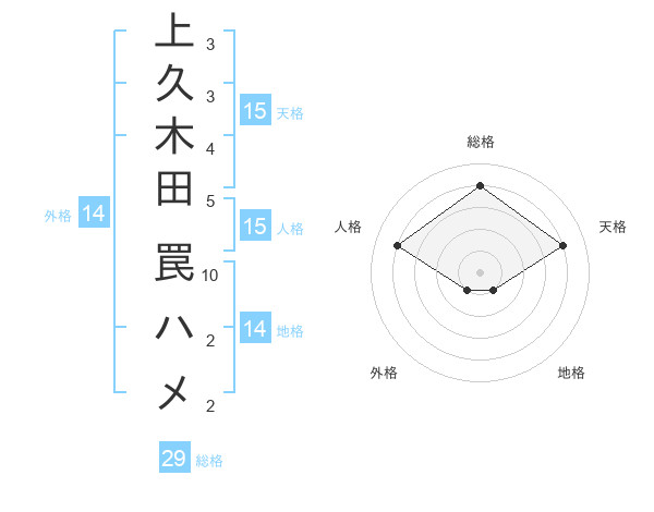 上久木田 罠ハメさんの総格は29画の4点!