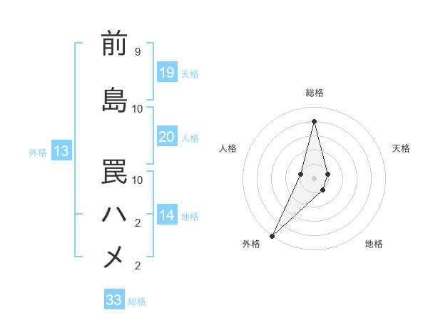 前島 罠ハメさんを姓名の画数から五運を鑑定