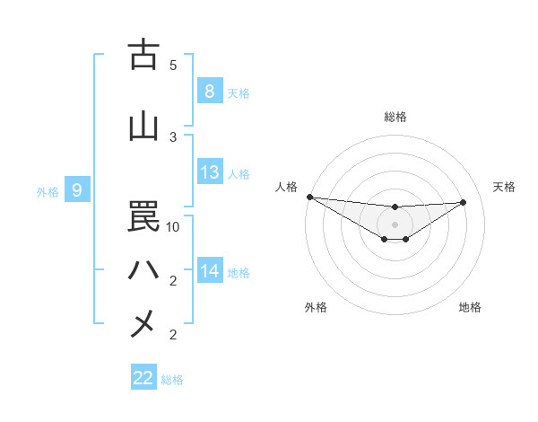 古山 罠ハメさんを姓名の画数から五運を鑑定
