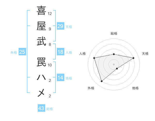 喜屋武 罠ハメさんを姓名の画数から五運を鑑定