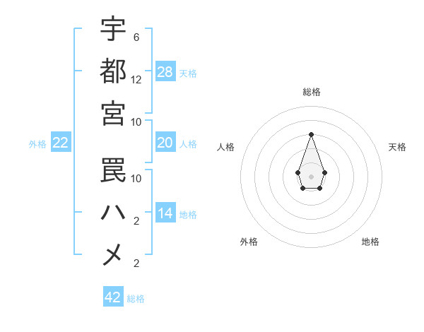 宇都宮 罠ハメさんの総格は42画の3点!
