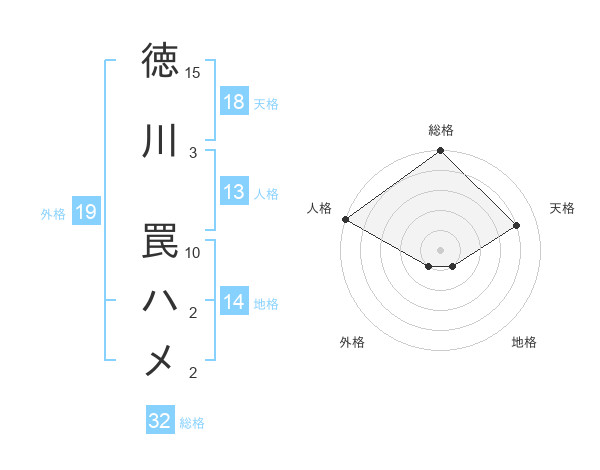 徳川 罠ハメさんを姓名の画数から五運を鑑定