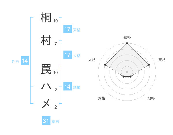 桐村 罠ハメさんを姓名の画数から五運を鑑定