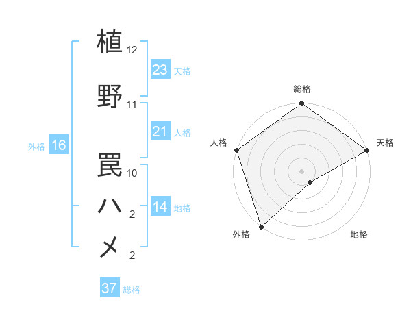 植野 罠ハメさんの総格は37画の5点
