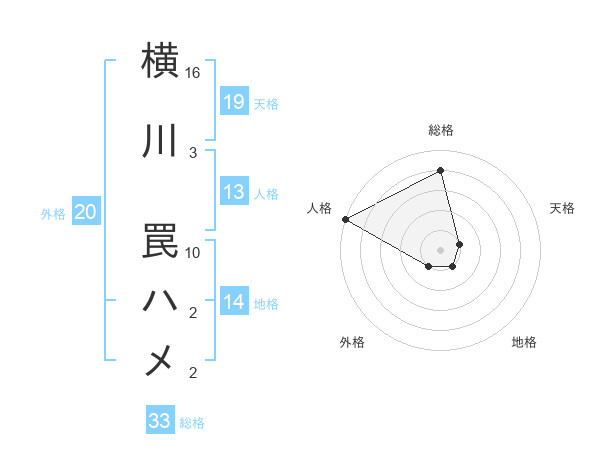 横川 罠ハメさんの地格は14画の1点!