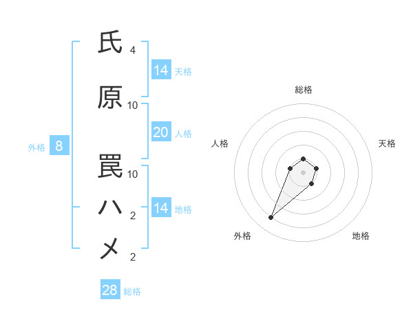 氏原 罠ハメさんを姓名の画数から五運を鑑定