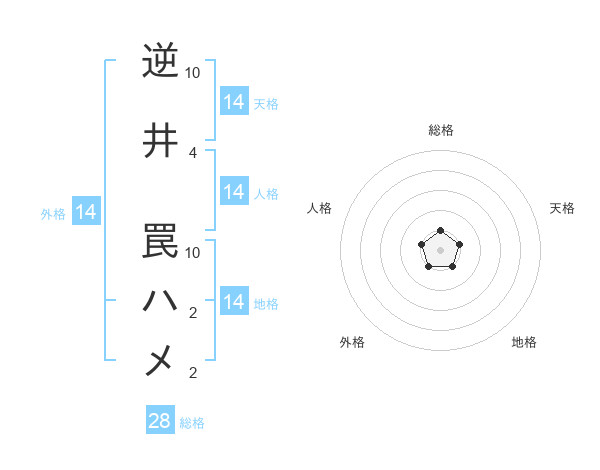 逆井 罠ハメさんを姓名の画数から五運を鑑定
