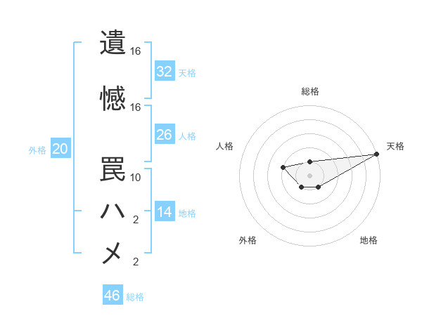 遺憾 罠ハメさんを姓名の画数から五運を鑑定