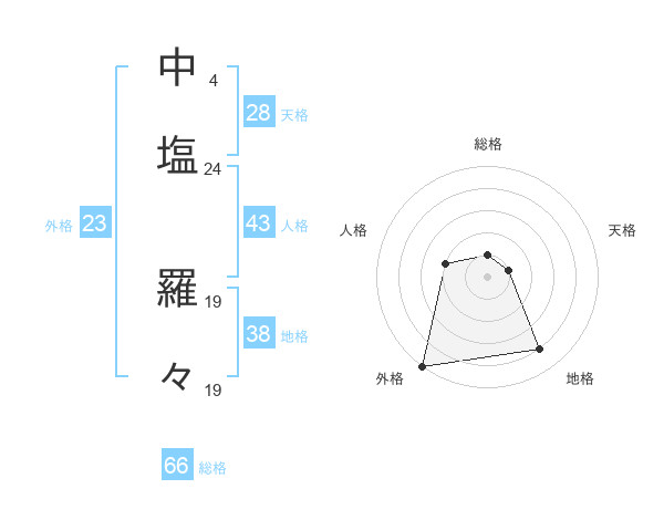 中塩 羅々さんを姓名の画数から五運を鑑定