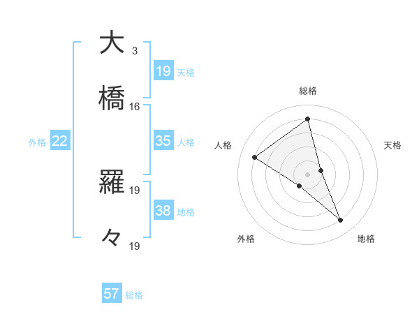 大橋 羅々さんの外格は22画の1点!