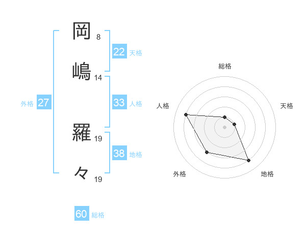岡嶋 羅々さんを姓名の画数から五運を鑑定