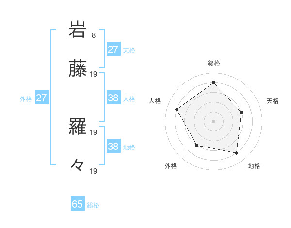 岩藤 羅々さんの総格は65画の4点!