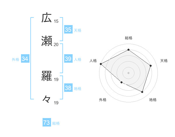 広瀬 羅々さんを姓名の画数から五運を鑑定
