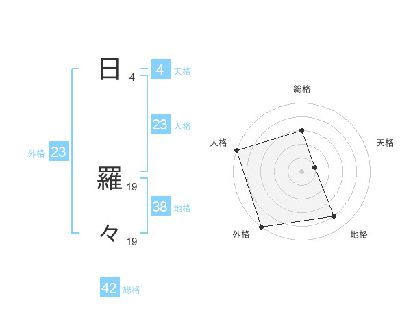 日 羅々さんの外格は23画の5点!
