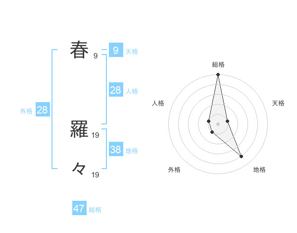 春 羅々さんの総格は47画の5点!