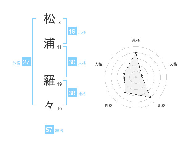 松浦 羅々さんを姓名の画数から五運を鑑定