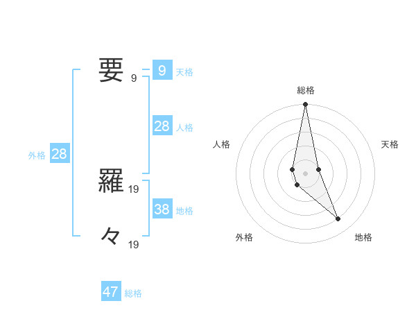 要 羅々さんの総格は47画の5点!