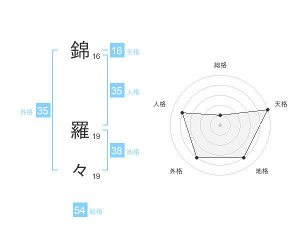 錦 羅々さんの外格は35画の4点!