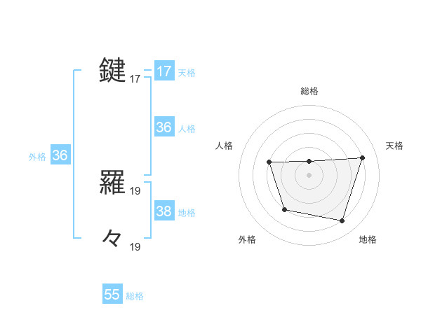 鍵 羅々さんを姓名の画数から五運を鑑定