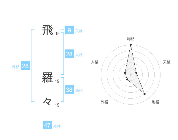 飛 羅々さんの総格は47画の5点!