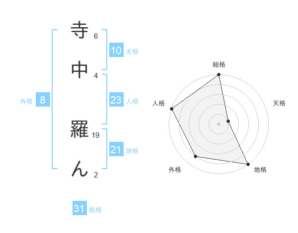 寺中 羅んさんの地格は21画の5点!