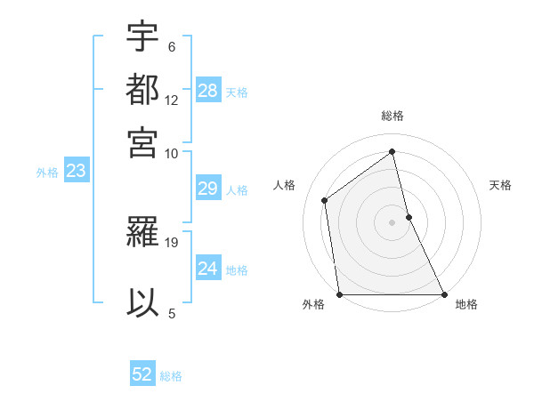 宇都宮 羅以さんを姓名の画数から五運を鑑定
