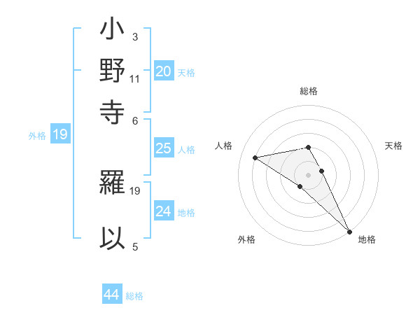 小野寺 羅以さんを姓名の画数から五運を鑑定