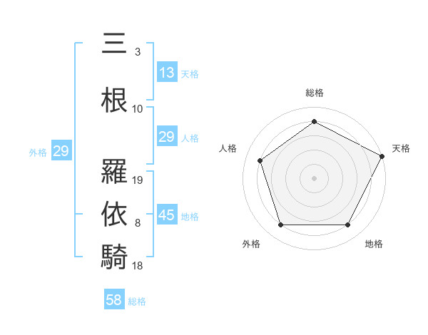 三根 羅依騎さんを姓名の画数から五運を鑑定