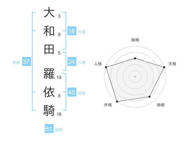 大和田 羅依騎さんを姓名の画数から五運を鑑定