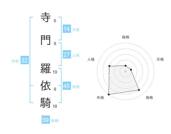 寺門 羅依騎さんの外格は32画の5点!