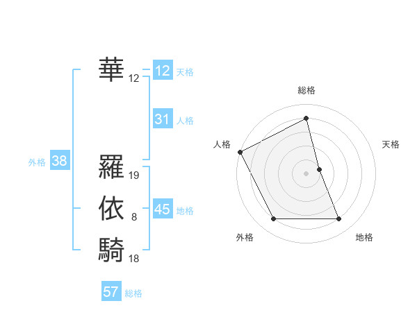 華 羅依騎さんの外格は38画の4点!