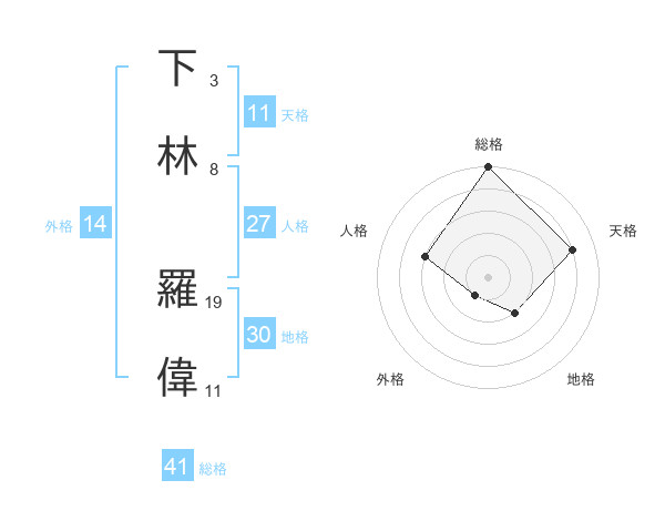 下林 羅偉さんの総格は41画の5点!