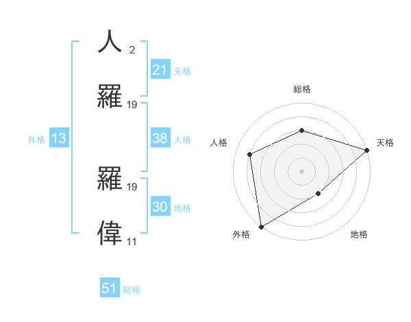 人羅 羅偉さんの総格は51画の3点!
