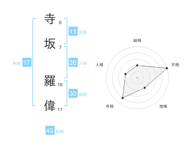 寺坂 羅偉さんの天格は13画の5点!