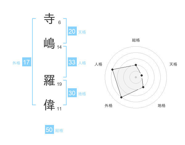 寺嶋 羅偉さんの総格は50画の2点!