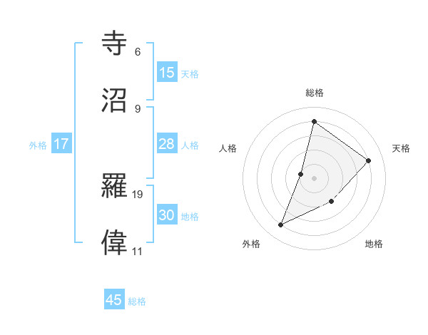 寺沼 羅偉さんの天格は15画の4点!